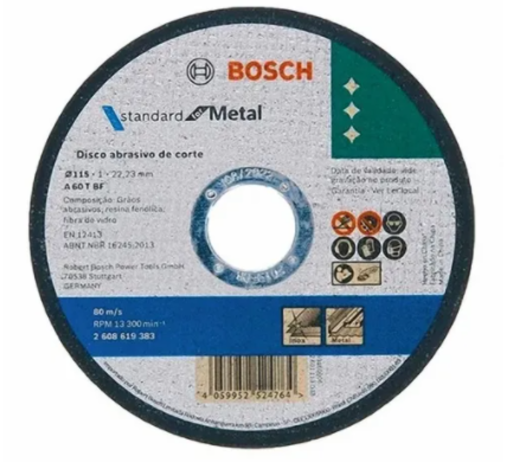 Disco de corte std p/metal 115×1.0mm bosch BOSCH