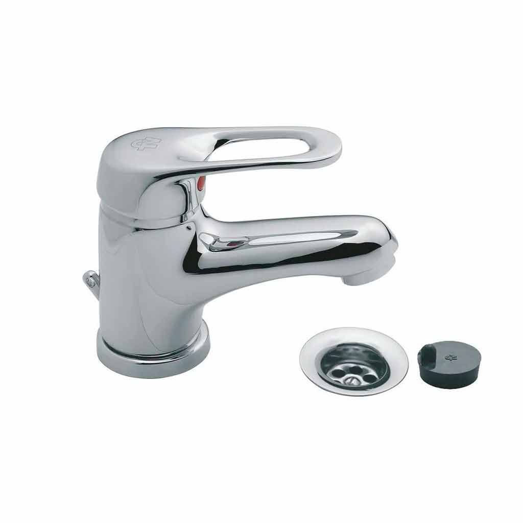 Juego monocomando para lavatorio. Desagüe con tapita. Color Cromo